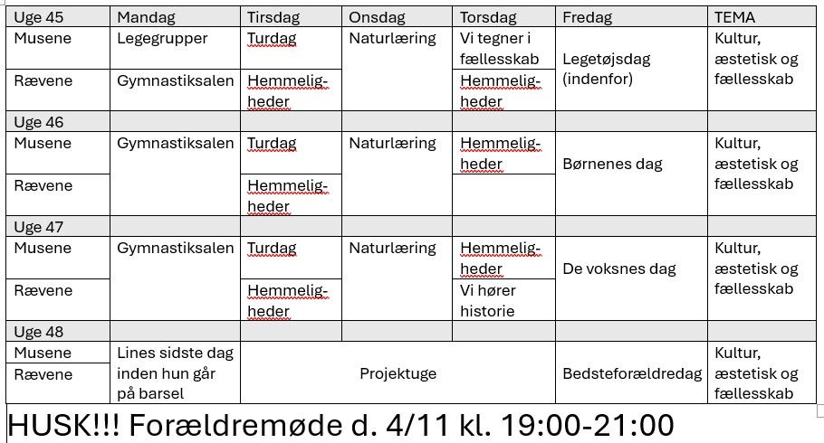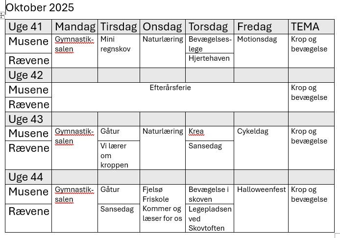 På denne side kan du se hvad vi skal lave (Månedsplan)